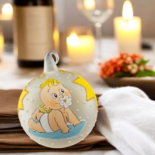 Old world craftsmanship comes to life in these elegant, hand-made ornaments. Blown glass ornaments are a traditional staple world-wide so not only would they look great on your tree, they also make for great gifts!!! Hand painted, stencil free designs, this baby’s first Christmas is a new addition for 2024. You can customize this design with a name, date or something else. There are 3 balloons on which to write. Customization is an additional $8.95 for up to 3 words. Each of our blown glass pieces is hand painted with skill, precision and love. Each piece is younique, just like you! Approximately 3.3″ in size. This is a hand made product so please allow for slight variance. Each piece is unique! Made in Ukraine Each ornament is individually boxed in a decorative display box Please note that the videos in my listings probably give the best indication of the actual product as I am a terrible photographer and my space is nowhere near professional-grade 🙂 **Please note that due to the uniqueness of the hand-made product each loop varies slightly in size. We therefore recommend using an ornament hook or ribbon to hang them on your tree, or wherever you wish to display them. Under no circumstance should you force something into the glass loop if you want it to last :)(Due to the war in Ukraine we are only producing ornaments with metal caps at this time. We apologize for the inconvenience.)