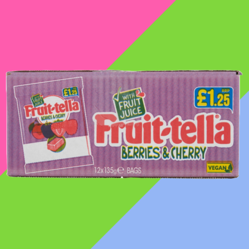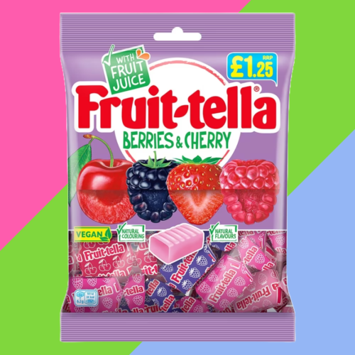 Assorted chewy sweets £1.25 price mark packs No artificial colours, flavours, and suitable for vegans Fruit lovers inspired Fruittella® to create delicious sweets made with fruit juice, natural flavours, and natural colourings that are suitable for vegans. Share and enjoy a fantastic fruity experience with Fruittella. These irresistibly juicy sweets are bursting with strawberry, raspberry, blackberry and cherry flavours, and are amazing value for your customers with their £1.25 price mark.