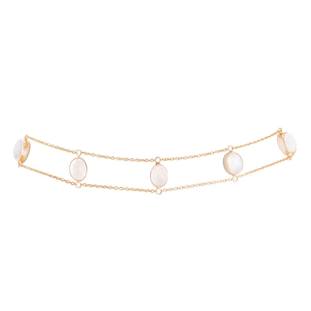 Designed with two chains, joined by white oval cabochon-shaped stones. You can wear it every day, combined with multi-chain necklaces or alone. Perfect also to give a sophisticated touch to your neckline looks.