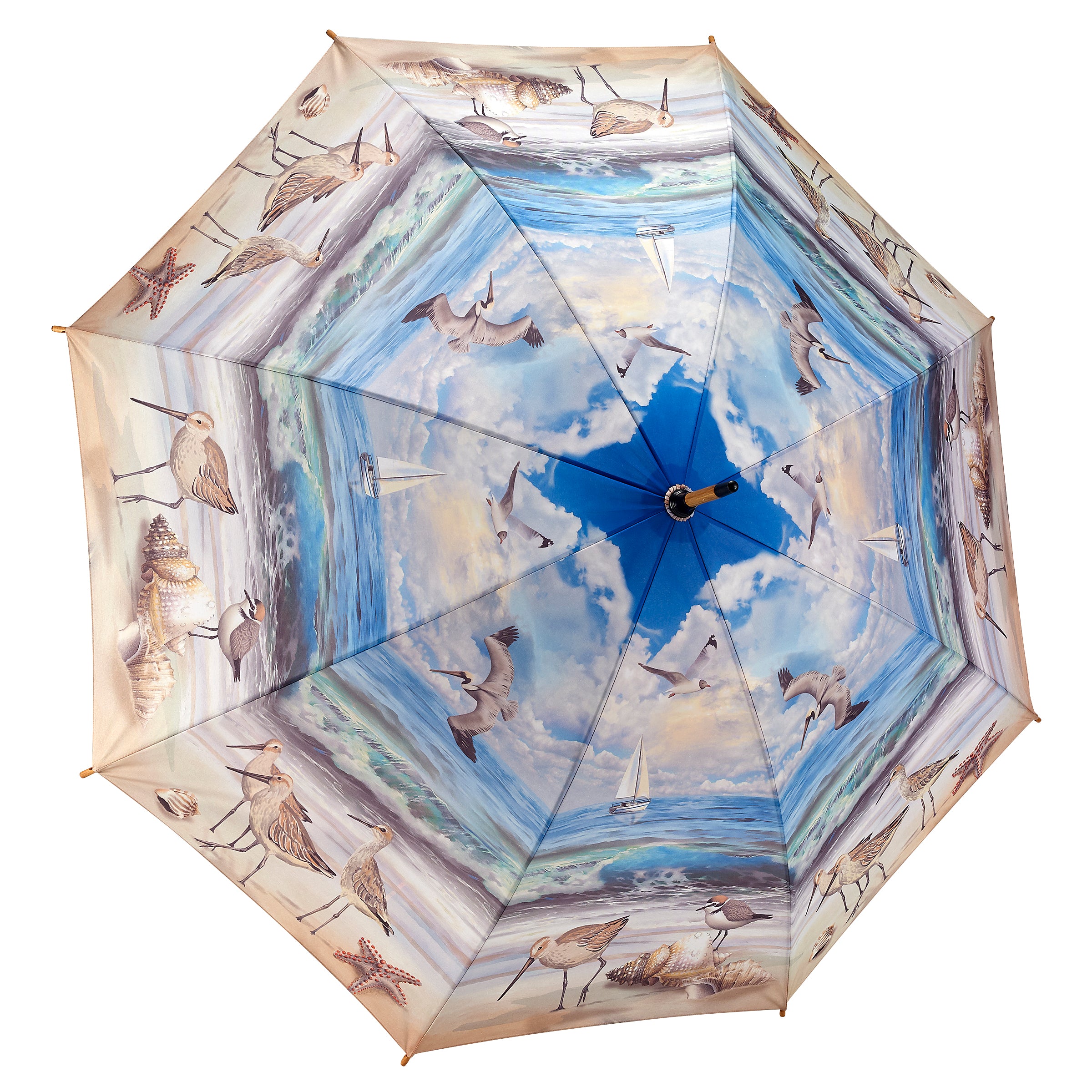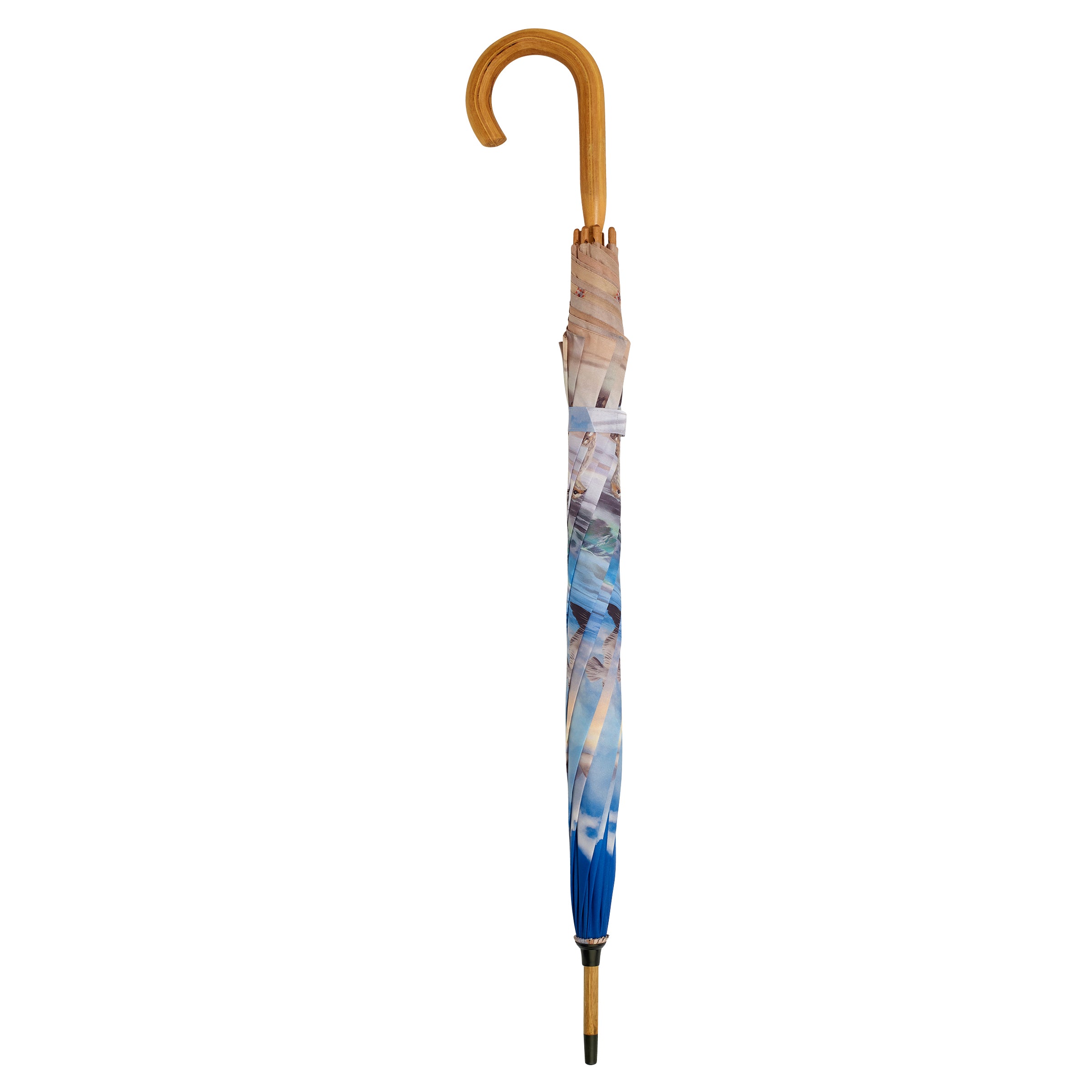 Product Features: Canopy made from Pongee Open Diameter 100cm Wooden Handle Automatic Opening With 8 Fibreglass ribs Walking Stick style Closed Length of 90cm Weight of 455 g This is a beautiful walking stick style umbrella from the Galleria Collection with an attractive Beach Scene design covering the canopy.