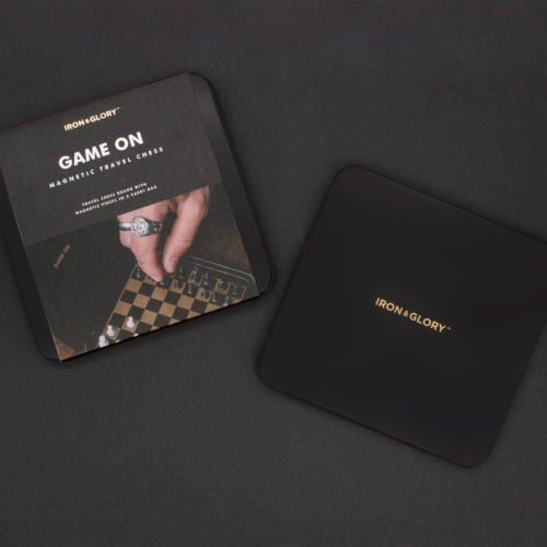 It’s true, traditionally chess is associated with nerdy turtleneck types, but 1) you should never mock a person who’s been told they’re a Grand Master of anything, and 2) we’re not here to judge anyone for their choice of sporting attire. Chess is a workout for the brain, a fun pastime, and a cool way to show off to people who only play drafts. Our magnetic chess pieces come in a velvet pouch, and the tin is the board, so no need to take up valuable backpack space. Get your game on. – Magnetic pieces – Velvet carry pouch – Stylish presentation tin Dimensions: 5.2 x 5.2 x 0.4 inches Materials: metal, plastic