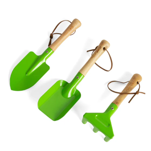 A fun, safe and durable set of gardening hand tools specifically designed for little hands. This set includes a hand fork, trowel and rake – all great for use in the garden with Mum and Dad! The tools feature a strong and sturdy wooden handle ensuring years of garden play. Budding young gardeners will be potting up plants, growing fruit and flowers before you know it! Garden accessories available in the Bigjigs Toys gardening range include a gardening belt, tote bag with tools, gardening gloves, long handled tools, watering cans, buckets, hand tools and an apron. Made from high quality, responsibly sourced materials. Conforms to current European safety standards.