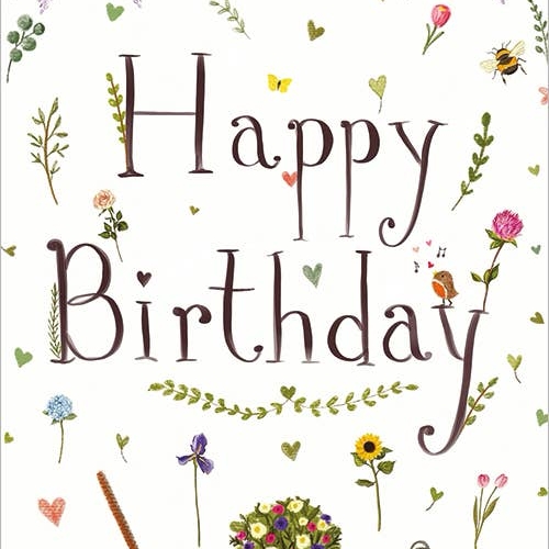 Beautifully illustrated birthday card with wisteria and garden tools.Presentation: Blank for your own message. Comes with a white 120gsm envelopePaper Type: Matt TexturedArtist: Love Lucy IllustrationSize: 5″x7″ : 127x178mm