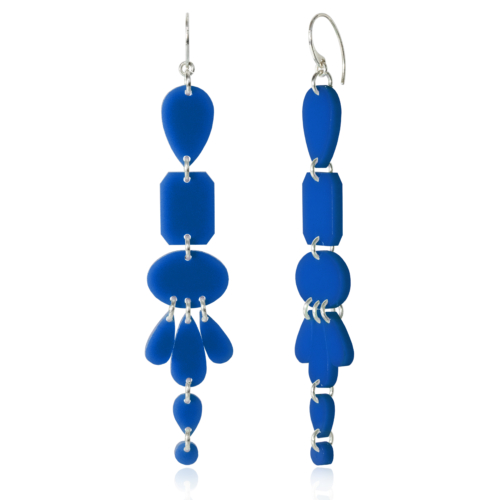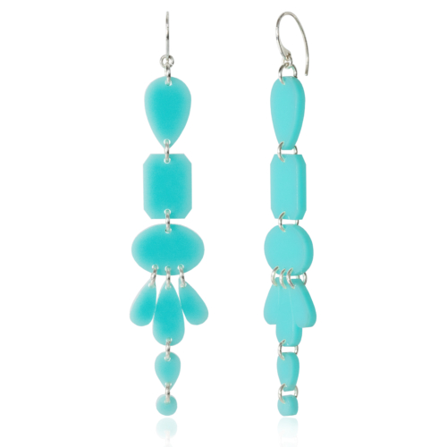 Large but extra light-weighted, these earrings transition smoothly from day to night. Earrings in Lucite acrylic and sterling silver with 3 precious metal platings: 18k yellow gold, 18k rose gold, and rhodium.