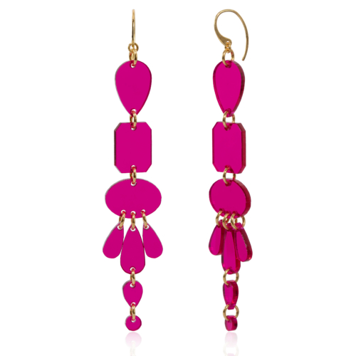Large but extra light-weighted, these earrings transition smoothly from day to night. Earrings in Lucite acrylic and sterling silver with 3 precious metal platings: 18k yellow gold, 18k rose gold, and rhodium.