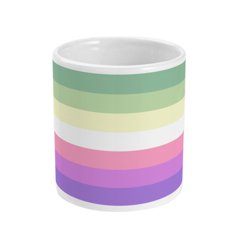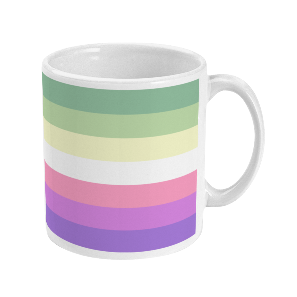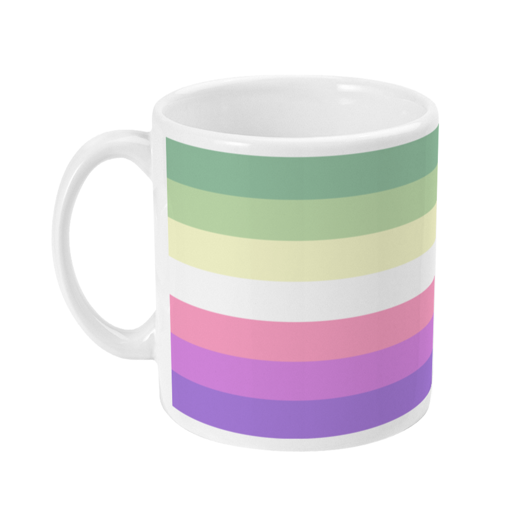 Show your Genderfae Pride with this colourful mug, perfect for starting your day off right with coffee or snuggling up on a winter night with hot chocolate. Details: 11oz glossy ceramic. Bright white glossy finish. Dishwasher Microwave safe.