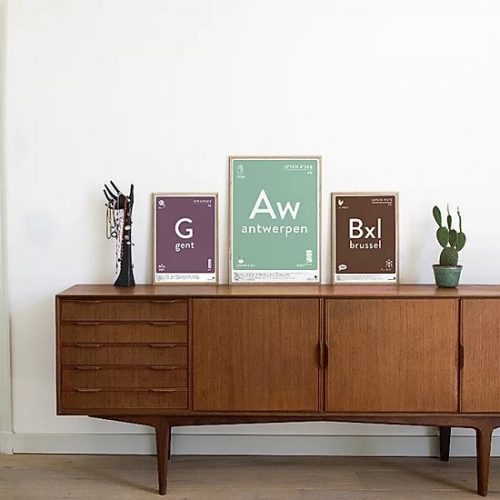 The posters are printed on off-white Biotop 250 gr paper (FSC/TCF), the cards on 300 gr, with a sustainable printing technique and a minimum waste of inks.
