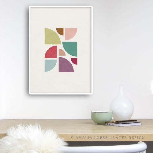 Geometric giclée print with a light vintage texture. High quality prints rich and vibrant in colour printed on heavyweight matte art paper. All prints are supplied individually packed inside a cello bag with backing board (frame not included)