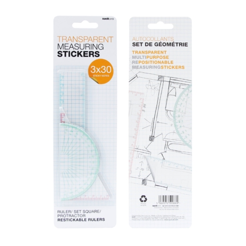 Transparent re-use-able sticky notes in the style of a classic geometry set.Works great for revision, math homework and sketching.3 x 30 sets of flexible reusable notes included in each pack.Includes set square, protractor and 6″ ruler.The perfect gift for perfectionists – a great addition to any stationery collection.From math homework, to scale drawing, to perfectly placed sticky-noting, this self-adhesive geometry set is sure to come in handy.