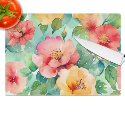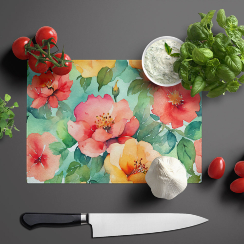Glass Cutting Board featuring breed specific Georgia Cherokee Rose artwork. Introduce your kitchen to the vibrant, large Decorative Glass Cutting Board from Caroline’s Treasures. Crafted from resilient tempered glass, this board is not only a utilitarian necessity but also a colorful art piece. With its generous dimensions of 15 inches in height and 12 inches in length, it offers ample space for all your cutting needs. Every piece showcases captivating artwork from distinguished artists, bringing an aesthetic edge to your kitchen. Beyond its attractive design, this cutting board ensures your countertop stays pristine and unscathed, owing to its heat-resistant properties. Engineered with user convenience in mind, it features non-skid feet for stability, and rounded corners for additional safety. Its robust construction renders it virtually unbreakable, guaranteeing longevity. The board comes with protective feet bumpers, maintaining its position during use. This product is recommended to be hand washed only. Proudly printed and assembled in the United States, this cutting board exemplifies superior craftsmanship. With Caroline’s Treasures’ Decorative Glass Cutting Board, you’re investing in a blend of functionality and artistic flair.