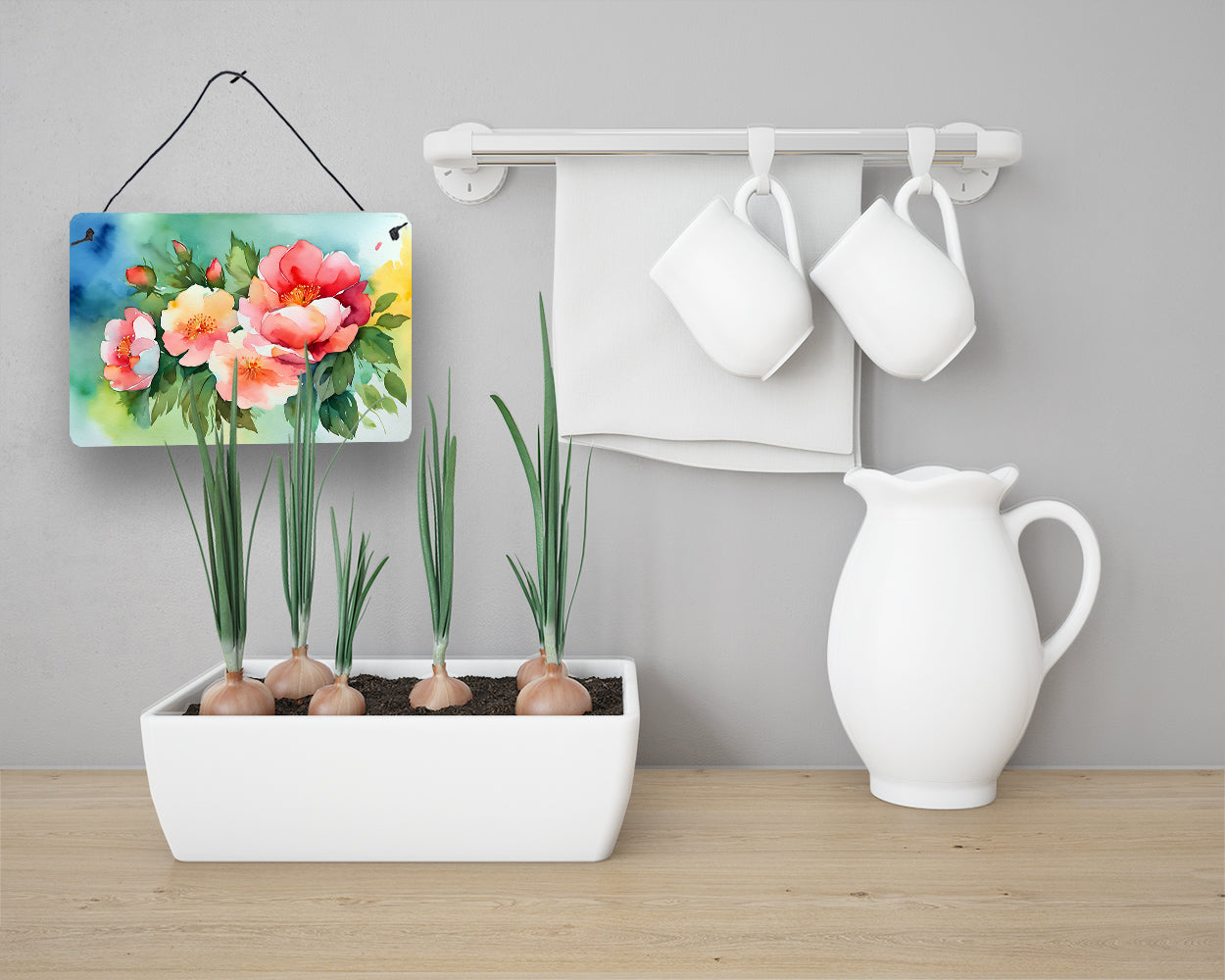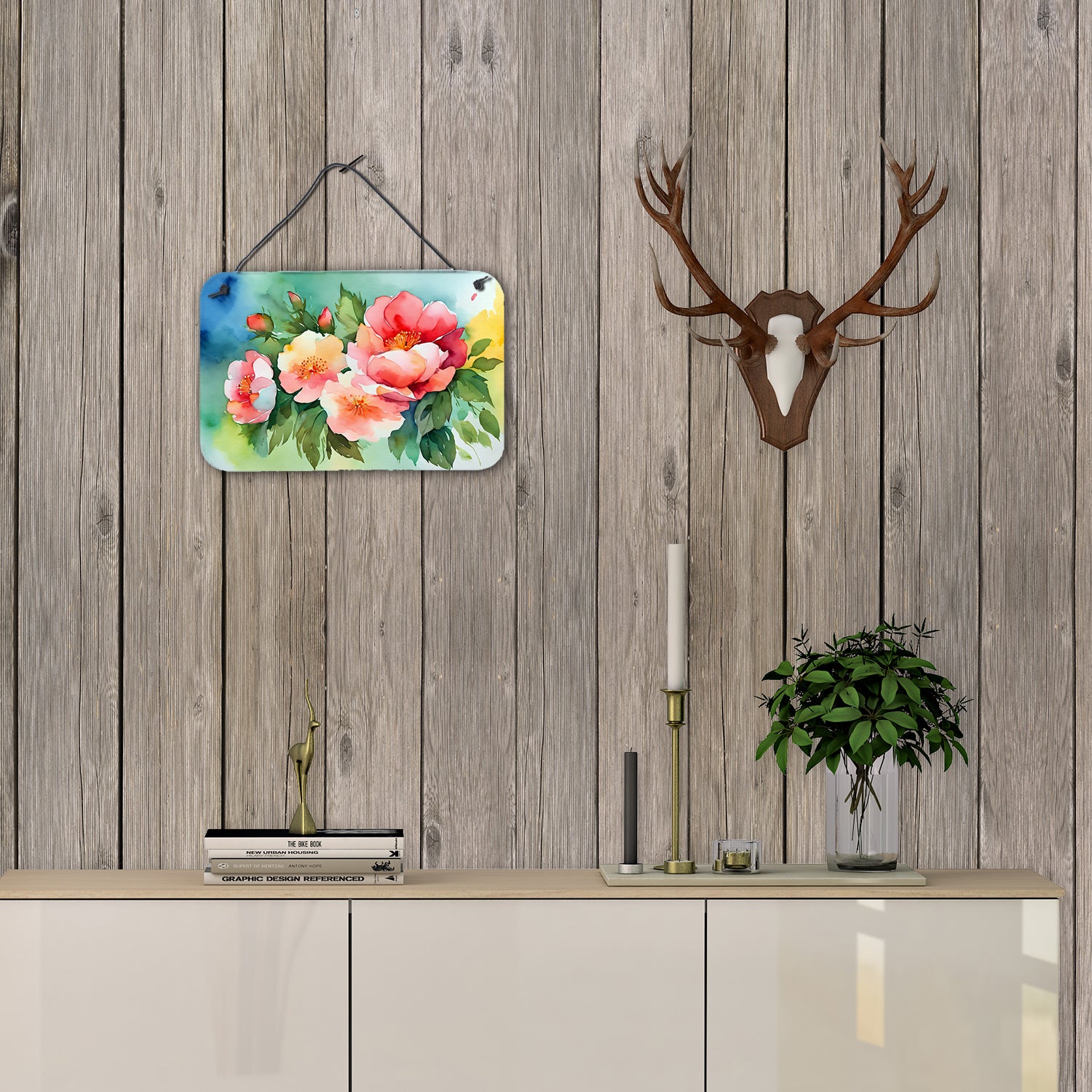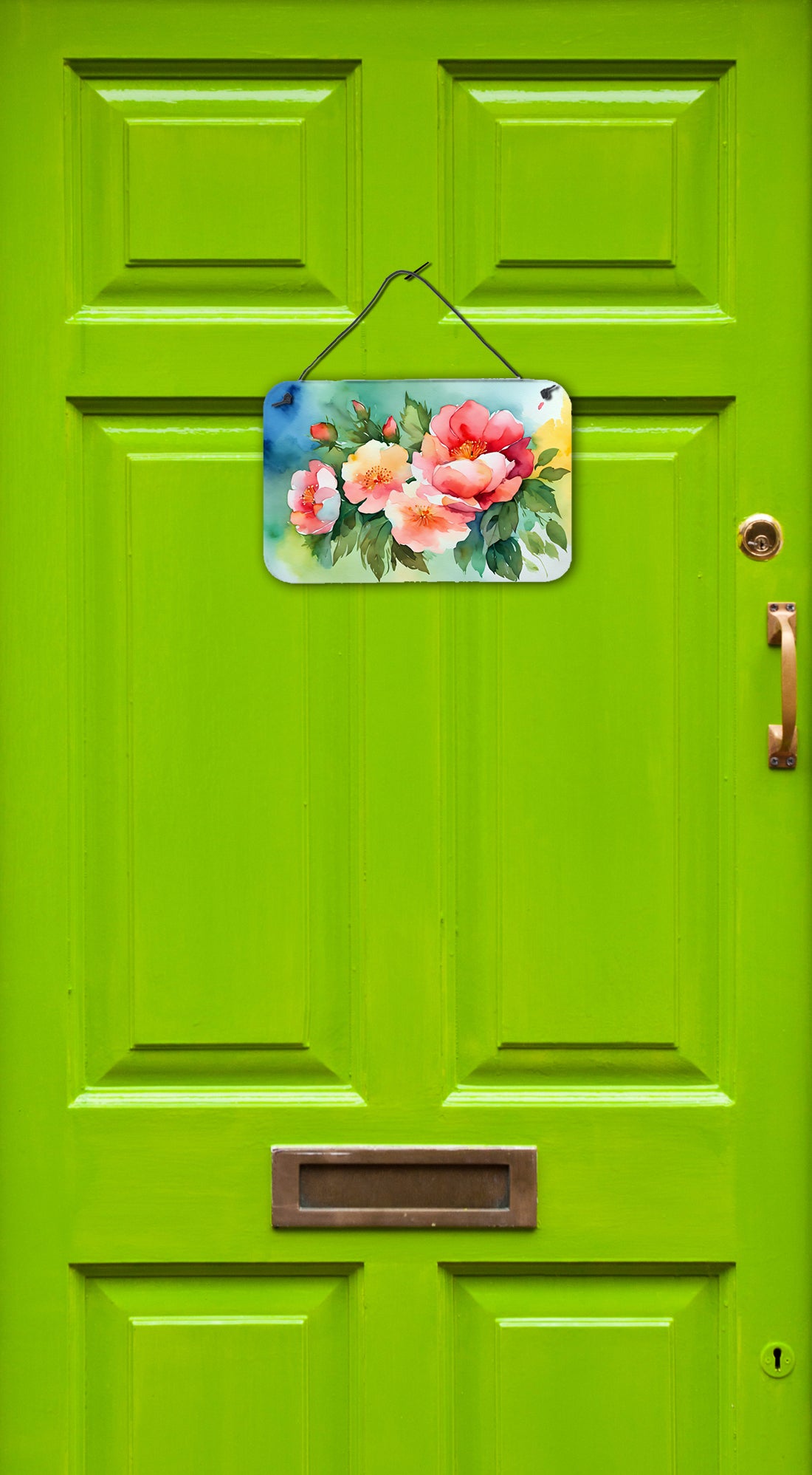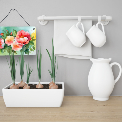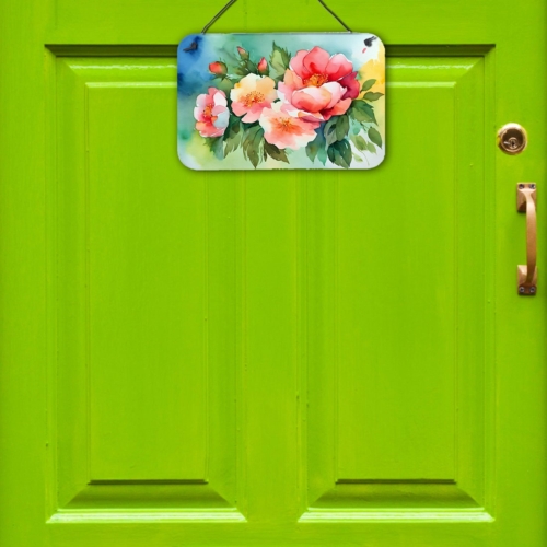 Wall or Door Hanging Prints featuring breed specific Georgia Cherokee Rose artwork. Add a splash of color and artistic flair to any indoor or outdoor space with our Aluminum Artwork Prints. These unique prints, featuring full-color, multicolor designs, provide a versatile decorative touch that can enhance a kitchen, bathroom, office, outdoor patio, or even the front door area. Each print measures 8 inches by 12 inches, making it the perfect size to catch the eye without overwhelming your space. Constructed with durability in mind, these prints can be placed outdoors and withstand direct sunlight for a significant amount of time before any fading begins. Designed for easy installation, each print features a black hanging rope and has a lightweight profile. This allows for quick hanging with just about any nail or screw. For safety and aesthetic appeal, the print’s corners are gently rounded. The back of the print showcases a brushed silver color for an added touch of elegance. Rust and fade-resistant, these Aluminum Artwork Prints are not only beautiful but are also built to last. Elevate your space with these stunning prints, crafted with care and artistic passion.