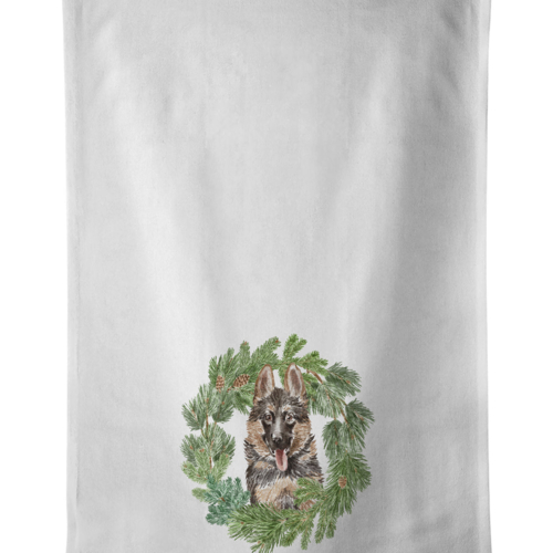 German Shepherd Puppy Smiling Christmas Wreath Kitchen Towel Set of 2