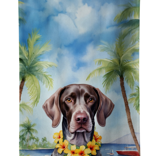 Kitchen Towel featuring breed specific German Shorthaired Pointer artwork. Experience the perfect blend of aesthetic appeal and functional excellence with our Plush Velour Kitchen Towels. These are not your ordinary decorative kitchen towels that gather dust. Instead, they are designed to be as practical as they are stylish. The front layer of our towel is constructed from a minky plush polyester, known for its durability and color retention. Unlike conventional kitchen towels, the artwork on our towels is dyed directly into the fabric, ensuring vibrant colors that last. Polish your glassware to a brilliant sparkle using the plush front side of the towel. Flip to the back, crafted from 100% cotton terry loop, to exploit its exceptional absorbency for drying dishes or wiping down counters. Our kitchen towels redefine the concept of functional art, offering lasting quality that maintains the towel’s shape over time. Measuring 15 inches by 25 inches and weighing 2.3 lbs per dozen, these towels deliver an overwhelming sensory experience with their soft, plush, and smooth texture. The edges are meticulously finished with binding, enhancing their durability and visual appeal. For your convenience, these towels are machine washable and can be dried on low heat. After the first wash, the top fabric becomes even softer and fluffier, eliminating the need for ironing. Treat your kitchen to the luxury and functionality it deserves with our plush velour kitchen towels.