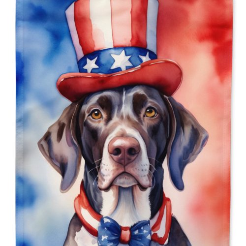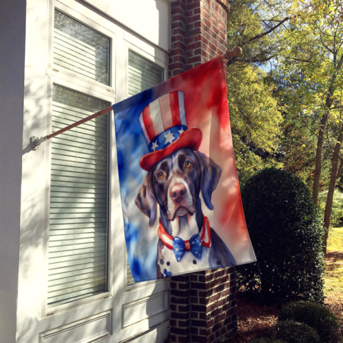 House Flag featuring breed specific German Shorthaired Pointer artwork. Presenting our Heavy Duty Polyester House Size Decorative Sleeve Pole Flag, a vibrant addition to enhance the aesthetic appeal of your home. This large decorative flag, measuring approximately 28 x 40 inches, offers ample coverage and visibility. Each flag is meticulously sewn and made individually, ensuring a unique piece that may slightly vary in size. It’s a sleeve pole flag, designed to fit a standard decorative flag pole effortlessly. Please note that the flag pole and bracket are not included and should be purchased separately. What sets our flag apart is its dual-sided print. The design is mirrored on both sides of the fabric, allowing for uniform visibility regardless of the angle. Printed in full color, our flag showcases vibrant hues that truly stand out. To ensure lasting vibrancy and durability, the dyes are heat-set into the fabric. This ensures your flag remains bright and captivating through various weather conditions. Elevate the look of your home with our Heavy Duty Polyester House Size Decorative Sleeve Pole Flag!