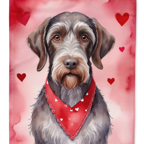 House Flag featuring breed specific German Wirehaired Pointer artwork. Celebrate Valentine’s Day with this Valentine’s Day Large Flag. Presenting our Heavy Duty Polyester House Size Decorative Sleeve Pole Flag, a vibrant addition to enhance the aesthetic appeal of your home. This large decorative flag, measuring approximately 28 x 40 inches, offers ample coverage and visibility. Each flag is meticulously sewn and made individually, ensuring a unique piece that may slightly vary in size. It’s a sleeve pole flag, designed to fit a standard decorative flag pole effortlessly. Please note that the flag pole and bracket are not included and should be purchased separately. What sets our flag apart is its dual-sided print. The design is mirrored on both sides of the fabric, allowing for uniform visibility regardless of the angle. Printed in full color, our flag showcases vibrant hues that truly stand out. To ensure lasting vibrancy and durability, the dyes are heat-set into the fabric. This ensures your flag remains bright and captivating through various weather conditions. Elevate the look of your home with our Heavy Duty Polyester House Size Decorative Sleeve Pole Flag!
