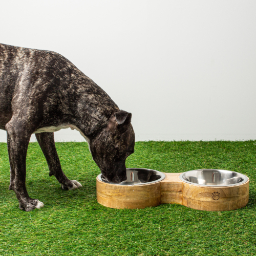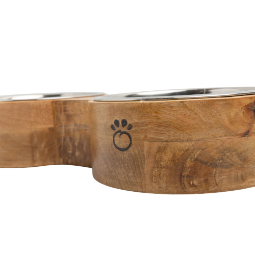 THE GF PET MANGO FIGURE 8 FEEDER IS HANDMADE, SO EVERY FEEDER IS UNIQUE! THE REMOVABLE STAINLESS STEEL INSERTS ARE DISHWASHER SAFE.