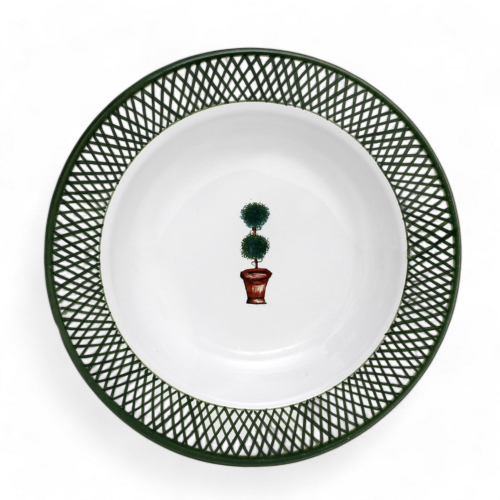 Giardino Collection: The Giardino (Garden) collection, is an exclusive product from Deruta of Italy.Deruta of Italy’s Giardino collection features a beautiful topiary design exclusively designed by the artist Alabaster.We Guarantee Authenticity: When it comes to fine Italian pottery, we understand authenticity is of the utmost importance. Ordering from us ensures that you’ll receive genuine, first-quality products.Our products are 100% original, brand new, and masterfully handmade in Italy. Each is always accompanied by a Certificate of Authenticity and further authenticated with a tamper-evident Hologram Sticker!Our tabletop ceramic ware is sourced from Deruta, a small hilltop town in the central Italian region of Umbria. At the same time, the finest handcrafted luxury Home Decor pottery comes from Tuscany, Sicily, and the Amalfi Coast.Masterfully hand-painted in Deruta, Italy. The Giardino products should be treated like ‘fine china’.We ship from the USA and our company, Artistica €”Deruta of Italy.Since 1983, we have been the first direct importer in the United States of real Deruta pottery.SIZE: Size: 10″ DIAM (The height of the rim is about 1-1/2″)