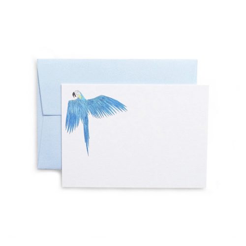 Set of 10 luxury Blue Parrot notecards made in England presented beautifully in a gift box.