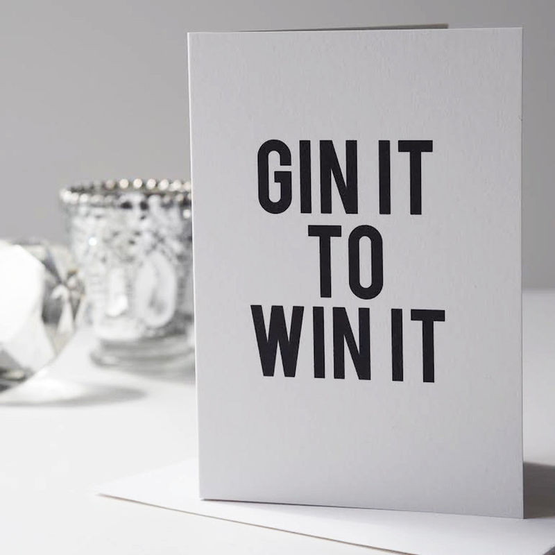 GIN IT TO WIN IT CARD – FUNNY CARD – GIN CARD – MONOCHROME CARD – CARD FOR HER – GIN AND TONIC – PACK OF 5