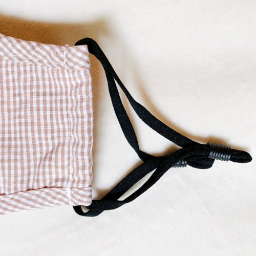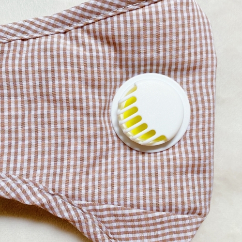 Washable gingham face mask with filter slots, dimensional design and sewing, breathing valve, and nose clip. Adjustable ear loops. Not for medial use or protects from toxic gases. Made in China