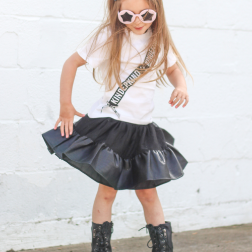 The perfect mix between sass and sweet, this tulle and faux leather skirt is the ultimate cool vibes. Pair with t-shirt and the matching faux leather bomber for the perfect look!