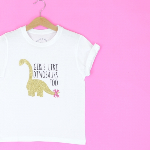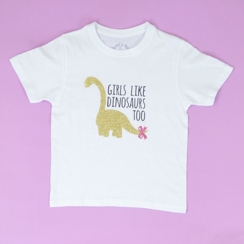 ‘GIRLS LIKE DINOSAURS TOO’ CUTE KIDS SLOGAN T-SHIRT