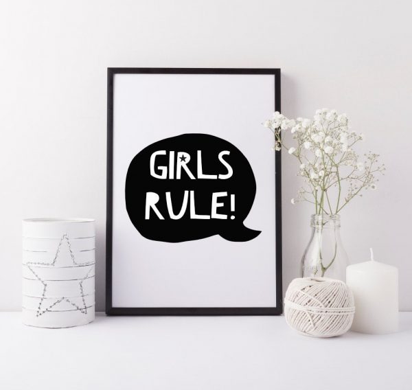 Girls rule speech bubble modern art print. This print will look perfect in any living room, bedroom, playroom, office or nursery. A great gift for any occasion.