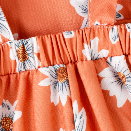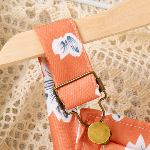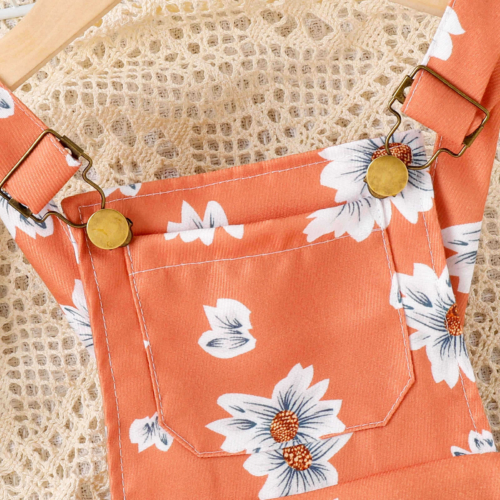 These sleeveless printing short overalls are designed for young girls. They are made of lightweight, breathable polyester fabric for comfort. The overalls have a vibrant, all-over print in bright colors and feature open pockets at the front and back for a more relaxed feel. The wide straps cross over the front of the shoulders for easy adjustments and the leg openings have elastic cuffs for a secure fit. The overalls are perfect for summer days, offering girls fashion and fun in one look.