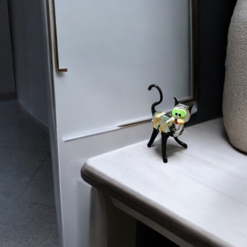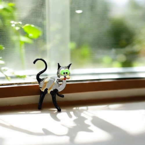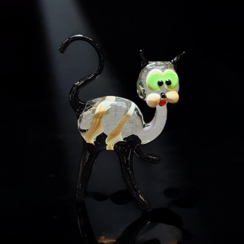 • Handcrafted In L’viv Oblast, Ukraine• Made from Ukrainian Soft Glass (NOT Borosilicate Glass)• Solid Glass, Not Hollow (Unlike Some Of Our Competitors)• Ships From Greensburg, PA• Approximately 3.5 inches• Very Detailed Glass Cat Figurine With Unique Character• Individually Wrapped (A Unique Piece of Glass Art in Every Package)• Great Addition To Your Glass Art Collection• Wonderful Gift For Cat Lovers• Hypoallergenic Cat• Lasts Forever As Long As You Treat It WellHand made in L’viv, Ukraine using traditional lamp-working technique where a master artisan uses a 700+ degree gas torch to expertly heat and bend naturally colored glass rods, the amazing creation is right before your eyes. Please allow for slight variation. Each piece is unique, just like you! Note: The product is made of naturally colored glass, so it may have bubbles, discoloration, etc., which are natural results of processing. The measurements may have errors. The colors of the product may differ slightly from what the pictures show. Please note that all sizes are approximations to give an indication of the size and due to the hand made nature of the product cannot be guaranteed. Materials: Glass,Love,Skill,Talent,Hand Tools,Torch,Gas