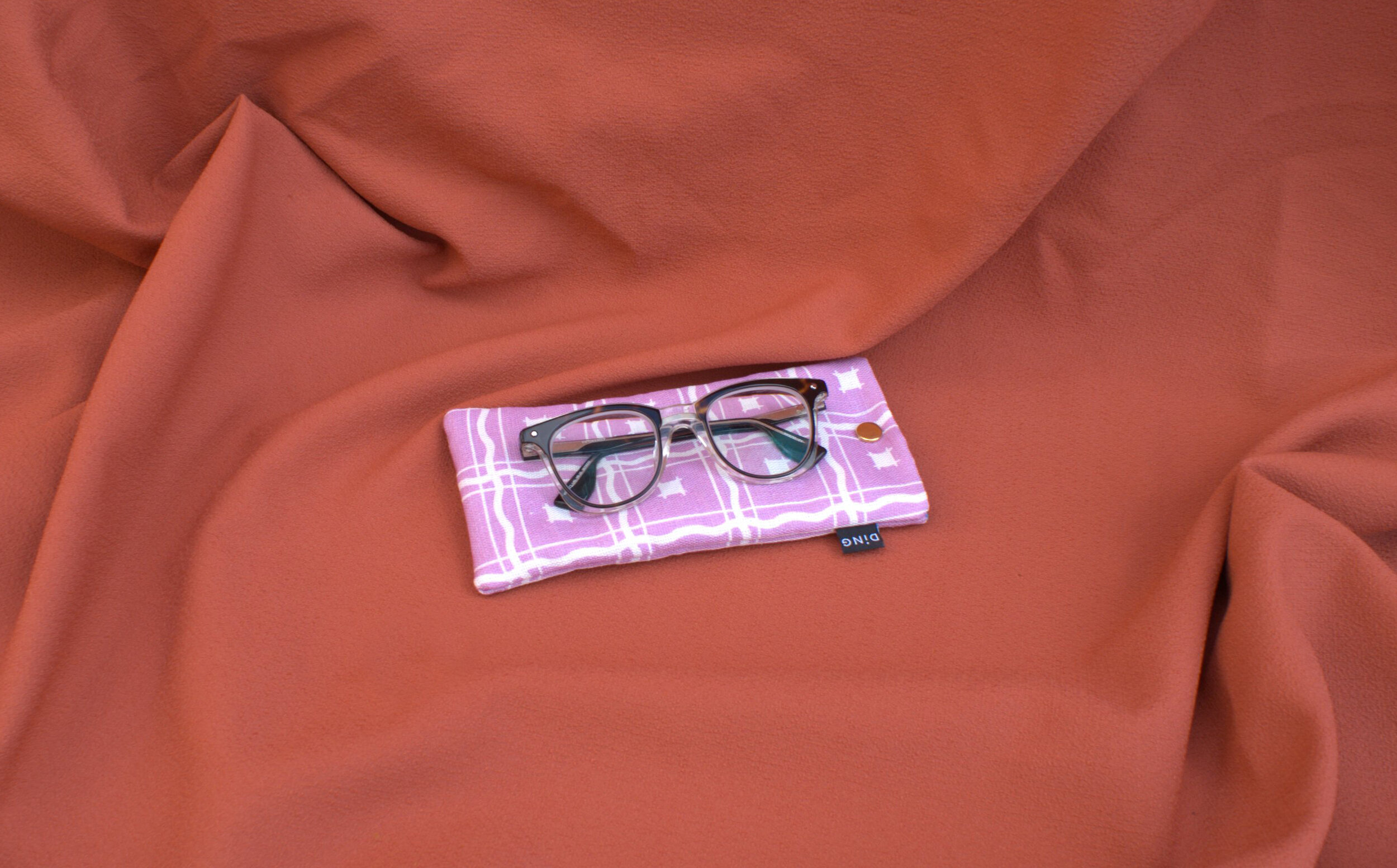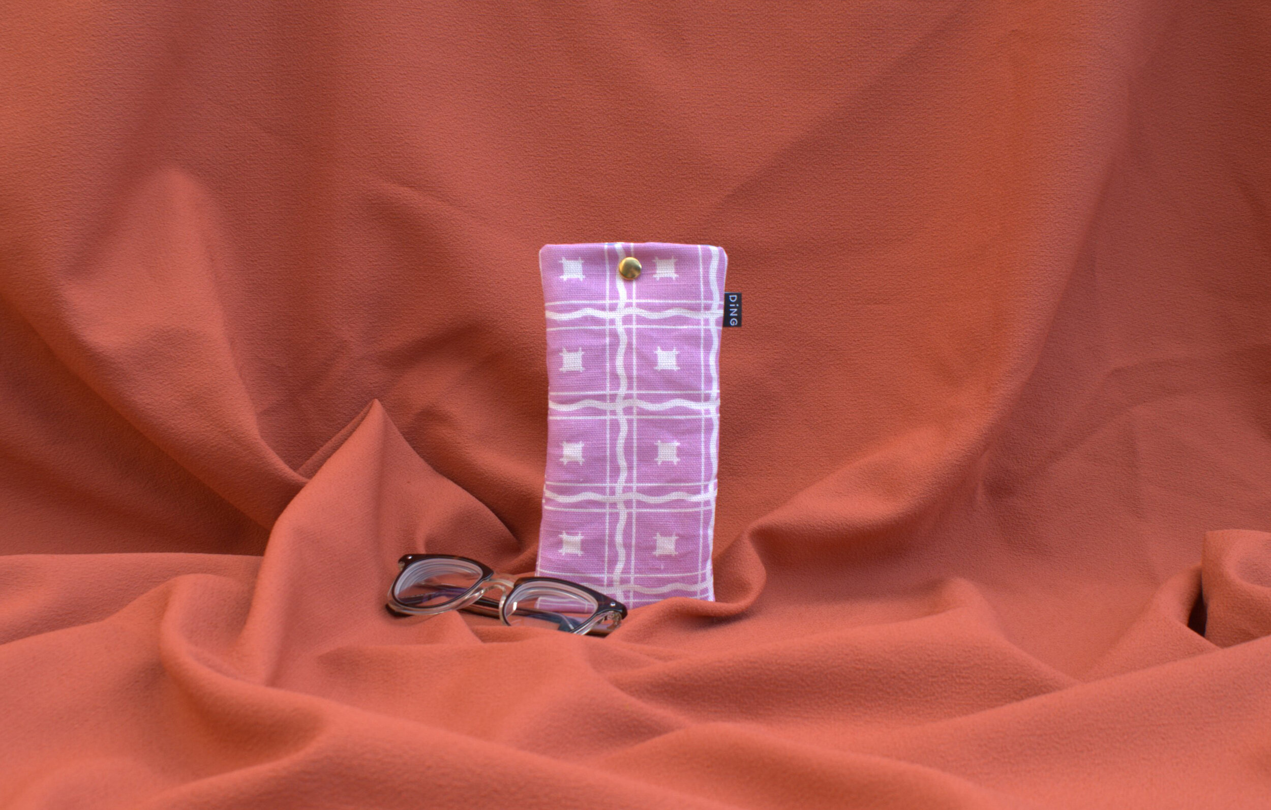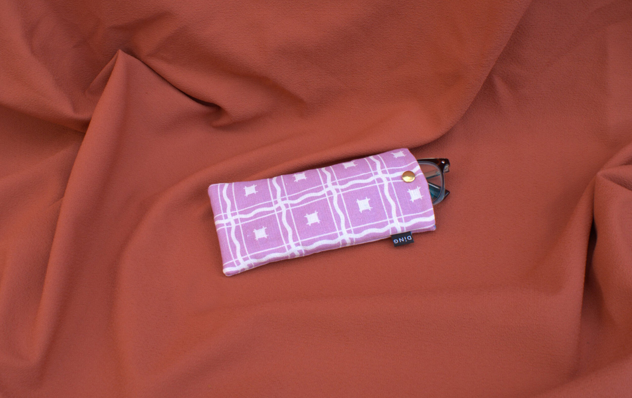 These pouches have protective inner of fully recycled 80% polyester/20% cotton wadding and a soft cotton lining. The brass press stud keeps the glasses secure without scratching the lenses.