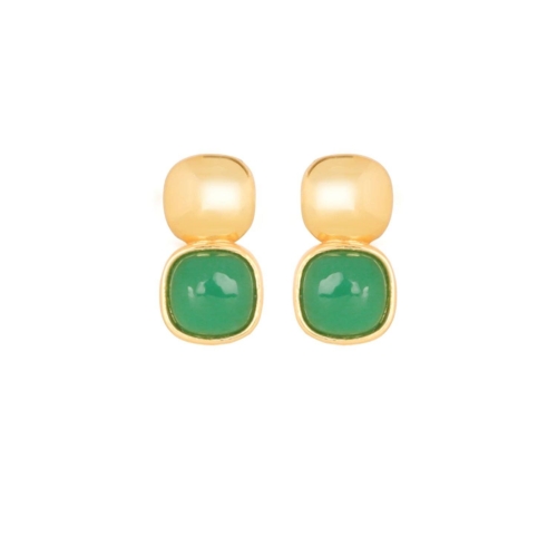 Make a statement with these stunning Paired Square Earrings, featuring a harmonious blend of elegance and vibrant color. The design showcases a glossy gold square on top, paired with a brilliant crystal in a rich emerald green hue below.Lightweight and versatile, these earrings add a pop of sophistication and color to any outfit. The striking contrast between the radiant gold finish and the deep emerald green crystal makes them a timeless accessory, perfect for day-to-night wear or special occasions.