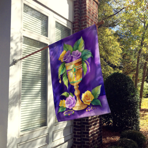 Celebrate Mardi Gras with this Mardi Gras Large Flag. Presenting our Heavy Duty Polyester House Size Decorative Sleeve Pole Flag, a vibrant addition to enhance the aesthetic appeal of your home. This large decorative flag, measuring approximately 28 x 40 inches, offers ample coverage and visibility. Each flag is meticulously sewn and made individually, ensuring a unique piece that may slightly vary in size. It’s a sleeve pole flag, designed to fit a standard decorative flag pole effortlessly. Please note that the flag pole and bracket are not included and should be purchased separately. What sets our flag apart is its dual-sided print. The design is mirrored on both sides of the fabric, allowing for uniform visibility regardless of the angle. Printed in full color, our flag showcases vibrant hues that truly stand out. To ensure lasting vibrancy and durability, the dyes are heat-set into the fabric. This ensures your flag remains bright and captivating through various weather conditions. Elevate the look of your home with our Heavy Duty Polyester House Size Decorative Sleeve Pole Flag!