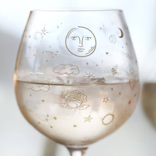 With a large glass basin to be filled with ice and topped with your favourite tipple, this glass has plenty of room. The outside of the basin is adorned with a stunning golden print including motifs of stars, constellations, moons and clouds. This stunning cosmic glass is hand wash only, so don’t put it in the dishwasher and definitely don’t put in the microwave! Please pat the outside dry and don’t leave to soak for long periods of time. comes with boxDimensionscapacity – 670mlwidth 10cm x height 22cmMade fromglass