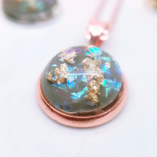 The gorgeous little resin domes are filled with real gold leaf flakes and iridescent shards that catch the light and sparkle in the most amazing way and come in a huge range of colours.