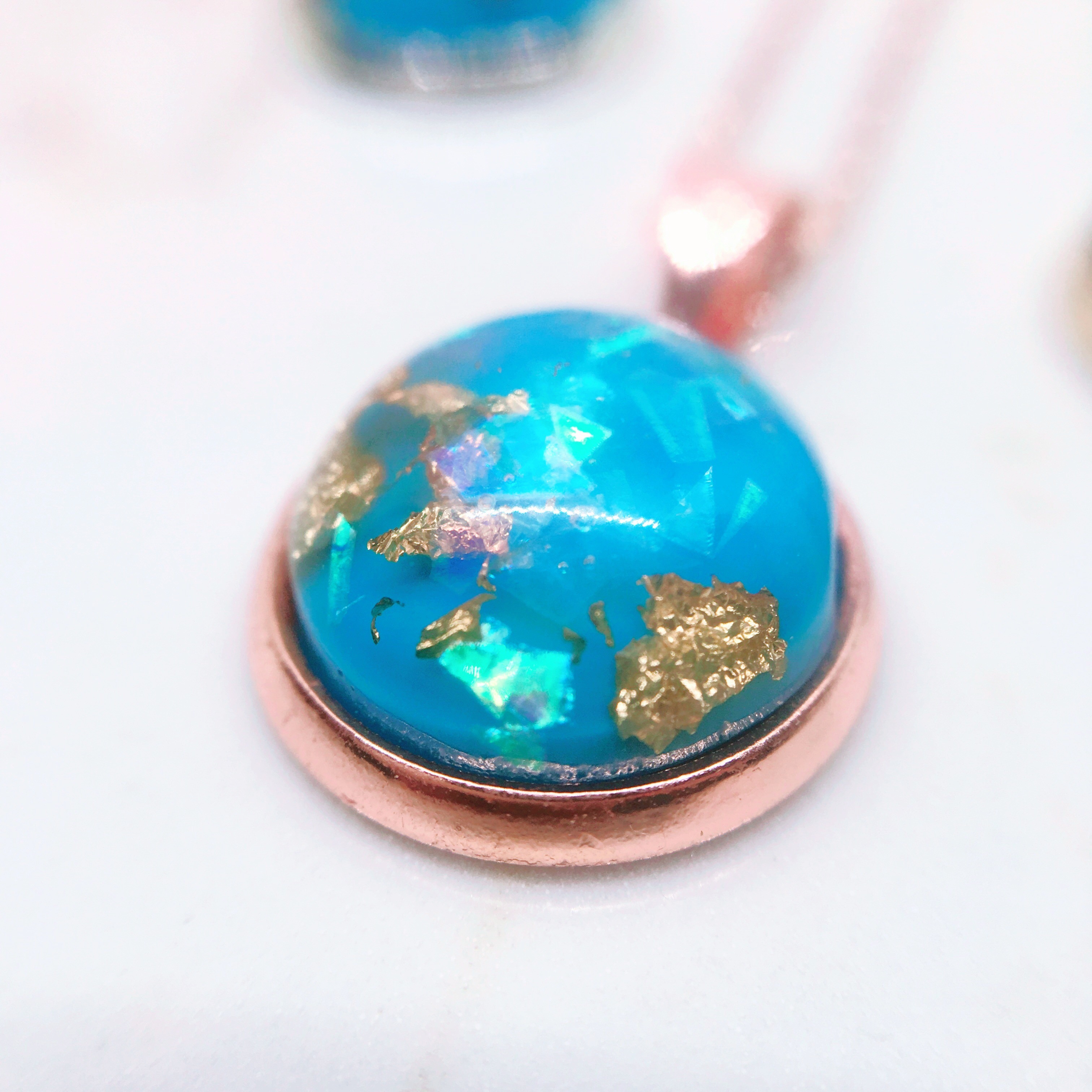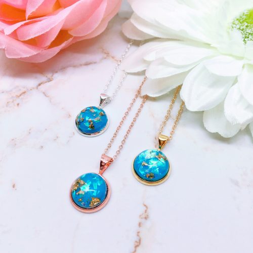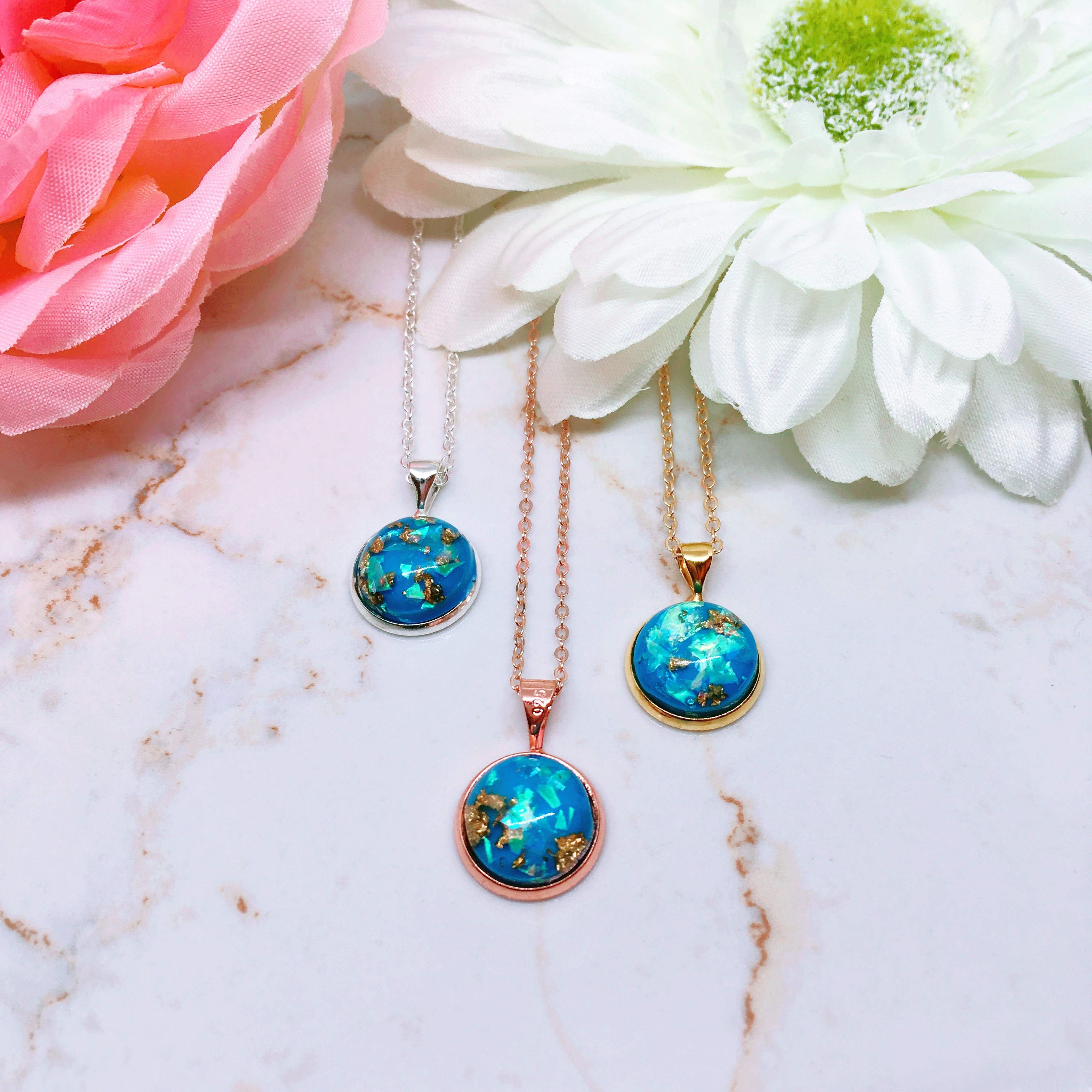Lake Blue Gold Fleck Resin Pendant Necklace