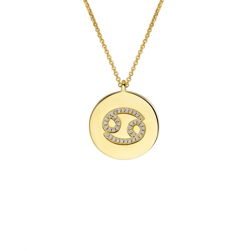 The Zodiac Collections features hand-setting with sparkling constellation symbol made up of high quality AAA Cubic Zirconias. Made of Sterling Silver and plated with 18k gold, this classic necklace is a great way to resemble friendship or love. The chain is adjustable to suit your neckline. The finishing of the necklace is polished smoothly to ensure maximum comfort of wear. Perfect for stacking with our classic Initials Necklaces.