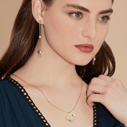 The Zodiac Collections features hand-setting with sparkling constellation symbol made up of high quality AAA Cubic Zirconias. Made of Sterling Silver and plated with 18k gold, this classic necklace is a great way to resemble friendship or love. The chain is adjustable to suit your neckline. The finishing of the necklace is polished smoothly to ensure maximum comfort of wear. Perfect for stacking with our classic Initials Necklaces.
