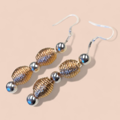 Discover the elegant Gold & Silver Oval Ribbed Bead Earrings€”a perfect blend of modern sophistication and timeless style. Paired with matching Necklace and Bracelet, these earrings offer a chic, versatile look for any occasion.Jess and Lou Socks, Accessories and Beautiful Jewellery.Jess and Lou have been designing Jewellery and Gifts in the UK for over 20 years. We are family run business making beautiful gifts for all at affordable prices. All designed in the UK by our experienced design team. Using recyclable packaging for all products.We have a large variety of Jewellery, Socks and Scarves including Necklaces, Bracelets, Cosy socks, Gloves, which are ideal gifts for Mother’s Day, Father’s Day, Valentines Day, Christmas, and Birthdays.