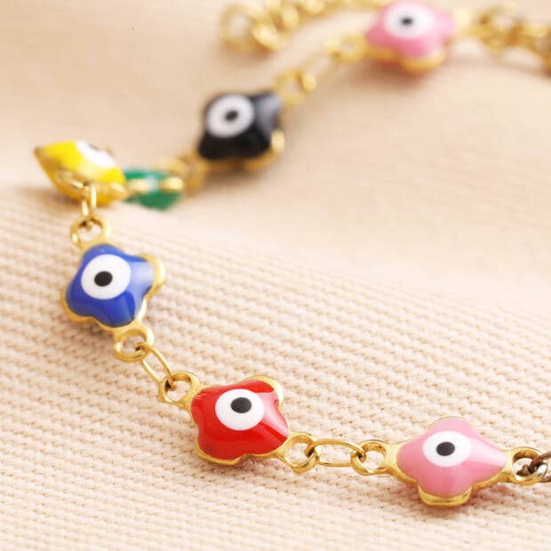 Gold Stainless Steel Enamel Evil Eye Charm Bracelet