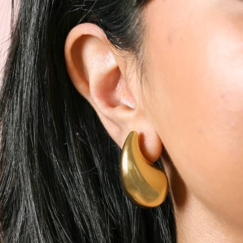 Gold Stainless Steel Oversized Teardrop Stud Earrings