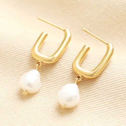 Elegant gold stainless steel rectangular earringsFeaturing a timeless pearl drop for a refined lookIdeal for layering with other gold accessoriesWith secure butterfly backs for a comfortable fitDimensionswidth 1.5cm x height 3.5cm x depth 1.5cmMade fromgold plated stainless steel