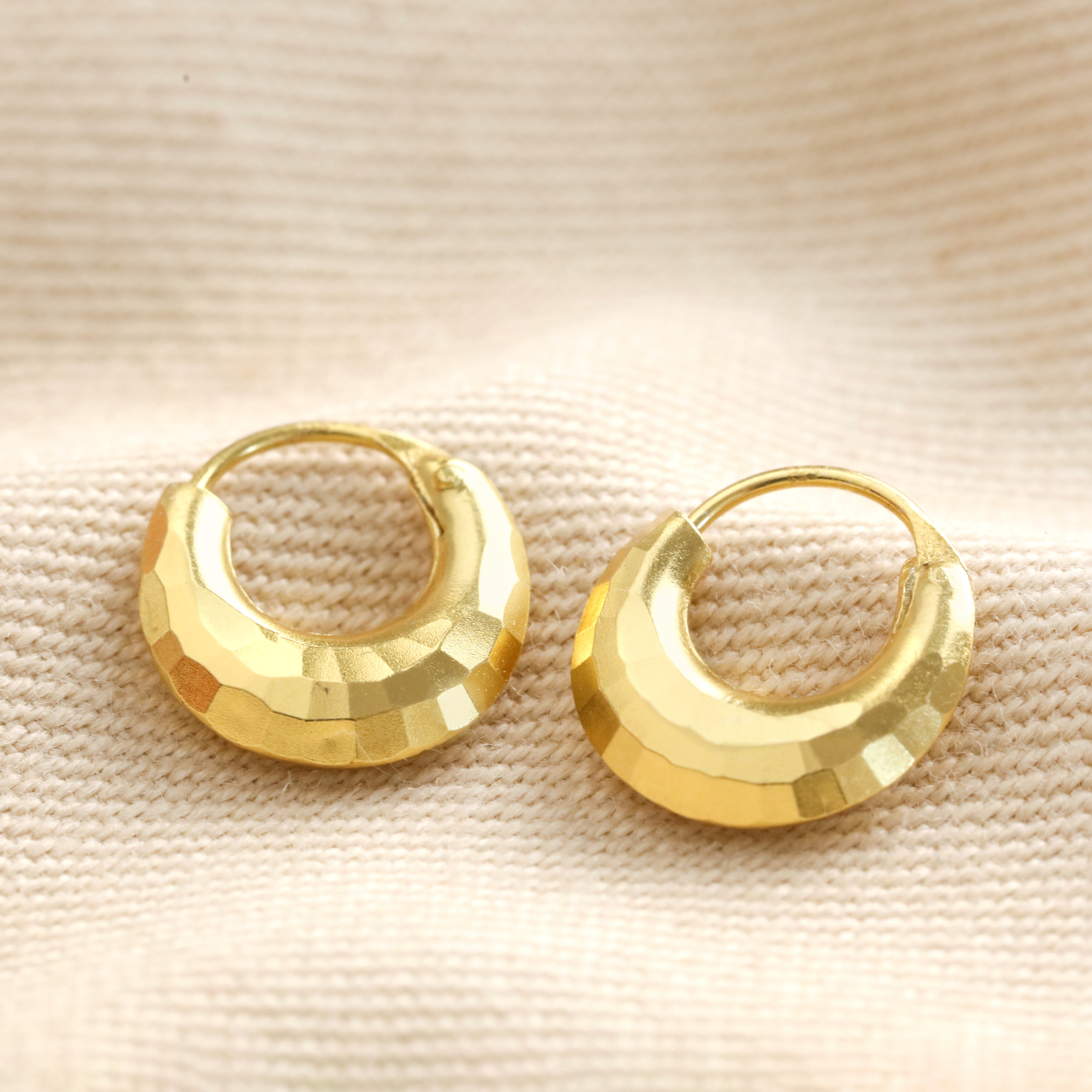 Gold Sterling Silver Faceted Dome Huggie Hoop Earrings