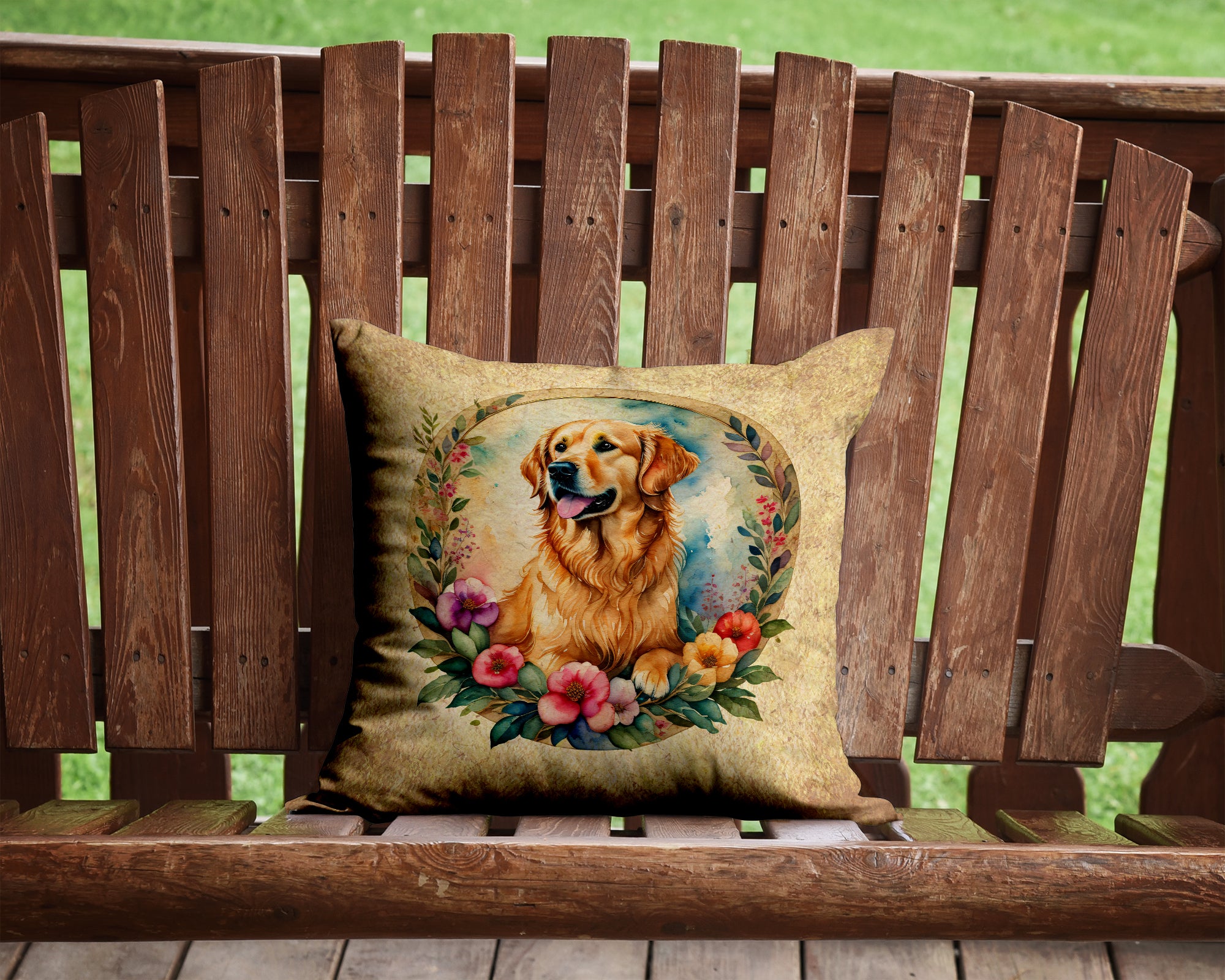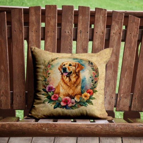 Throw Pillow featuring breed specific Golden Retriever artwork. Add a touch of vibrancy and comfort to your outdoor seating with Caroline’s Treasures Fabric Decorative Pillow. Measuring approximately 14 inches by 14 inches, this outdoor pillow is crafted to elevate the appeal of your patio furniture, infusing it with vivid color and artistic flair. The pillow includes a 100% Polyester Fabric sham filled with a quality pillow form to provide superior comfort. Innovatively made from our brand new material, specifically woven for its water resistance, this pillow is designed for durability. The soft canvas fabric offers versatility in use, fit for your indoor couch or your outdoor patio, porch, or veranda. The fabric is dyed with colorfast dyes built for resilience against weather conditions, ensuring the pillow retains its beauty over time. Constructed by sewing three fabric pieces to create a sham, the polyester insert is then nestled inside to form the pillow, resulting in an overstuffed pillow that maintains its shape. Both the sham and the pillow insert are proudly made in the United States. As the pillows are handcrafted, there may be minor variations in size, further enhancing their unique charm. Experience comfort in style with Caroline’s Treasures Fabric Decorative Pillow.