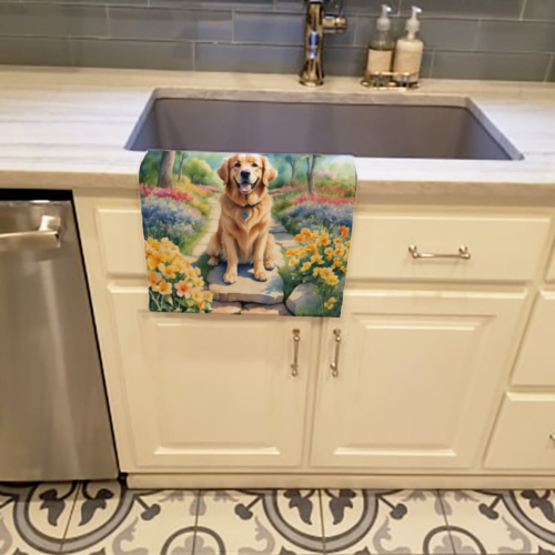 Kitchen Towel featuring breed specific Golden Retriever artwork. Experience the perfect blend of aesthetic appeal and functional excellence with our Plush Velour Kitchen Towels. These are not your ordinary decorative kitchen towels that gather dust. Instead, they are designed to be as practical as they are stylish. The front layer of our towel is constructed from a minky plush polyester, known for its durability and color retention. Unlike conventional kitchen towels, the artwork on our towels is dyed directly into the fabric, ensuring vibrant colors that last. Polish your glassware to a brilliant sparkle using the plush front side of the towel. Flip to the back, crafted from 100% cotton terry loop, to exploit its exceptional absorbency for drying dishes or wiping down counters. Our kitchen towels redefine the concept of functional art, offering lasting quality that maintains the towel’s shape over time. Measuring 15 inches by 25 inches and weighing 2.3 lbs per dozen, these towels deliver an overwhelming sensory experience with their soft, plush, and smooth texture. The edges are meticulously finished with binding, enhancing their durability and visual appeal. For your convenience, these towels are machine washable and can be dried on low heat. After the first wash, the top fabric becomes even softer and fluffier, eliminating the need for ironing. Treat your kitchen to the luxury and functionality it deserves with our plush velour kitchen towels.