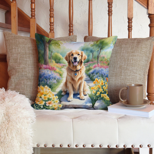 Throw Pillow featuring breed specific Golden Retriever artwork. Add a touch of vibrancy and comfort to your outdoor seating with Caroline’s Treasures Fabric Decorative Pillow. Measuring approximately 14 inches by 14 inches, this outdoor pillow is crafted to elevate the appeal of your patio furniture, infusing it with vivid color and artistic flair. The pillow includes a 100% Polyester Fabric sham filled with a quality pillow form to provide superior comfort. Innovatively made from our brand new material, specifically woven for its water resistance, this pillow is designed for durability. The soft canvas fabric offers versatility in use, fit for your indoor couch or your outdoor patio, porch, or veranda. The fabric is dyed with colorfast dyes built for resilience against weather conditions, ensuring the pillow retains its beauty over time. Constructed by sewing three fabric pieces to create a sham, the polyester insert is then nestled inside to form the pillow, resulting in an overstuffed pillow that maintains its shape. Both the sham and the pillow insert are proudly made in the United States. As the pillows are handcrafted, there may be minor variations in size, further enhancing their unique charm. Experience comfort in style with Caroline’s Treasures Fabric Decorative Pillow.