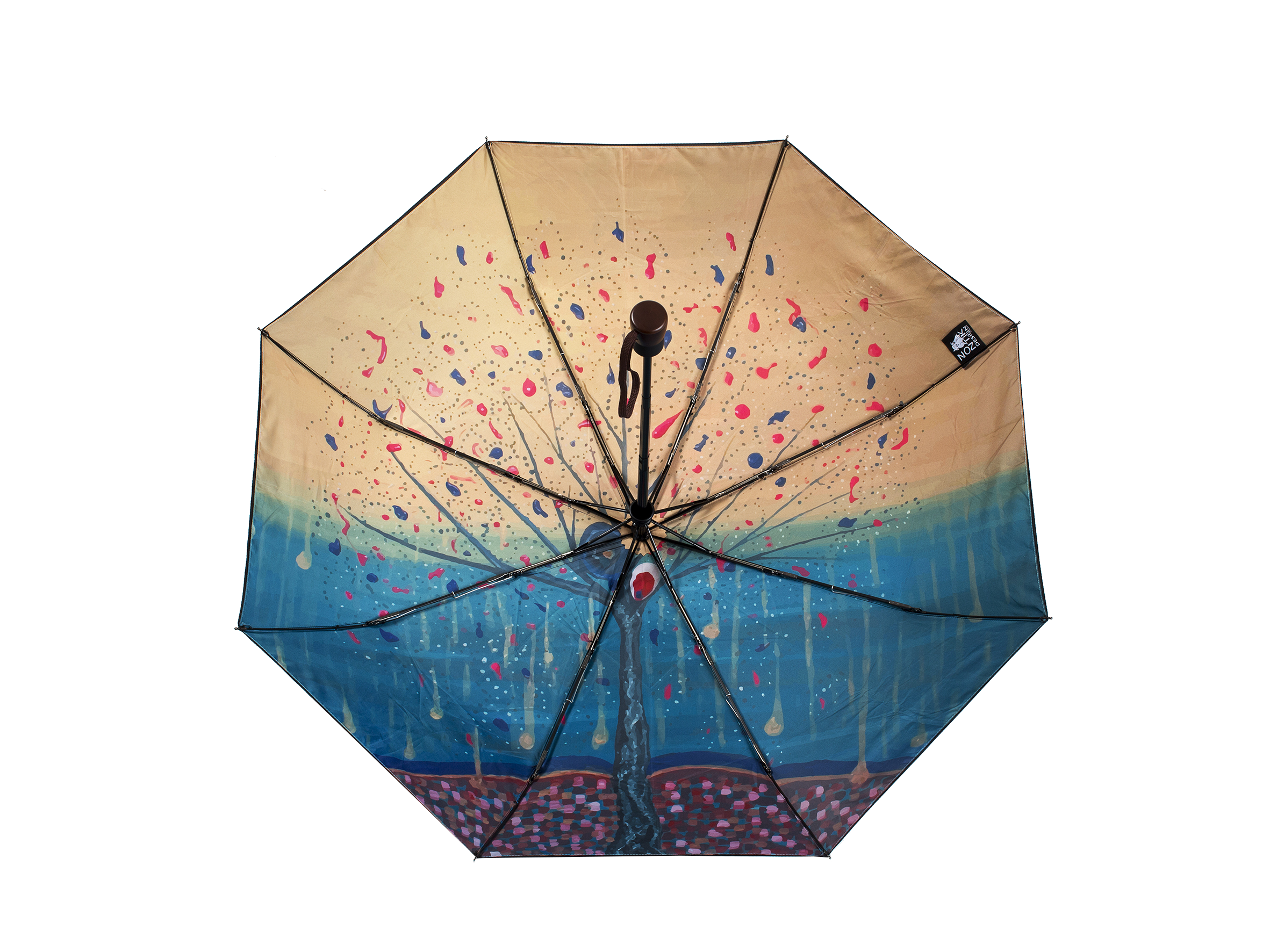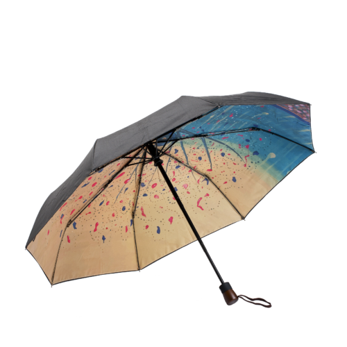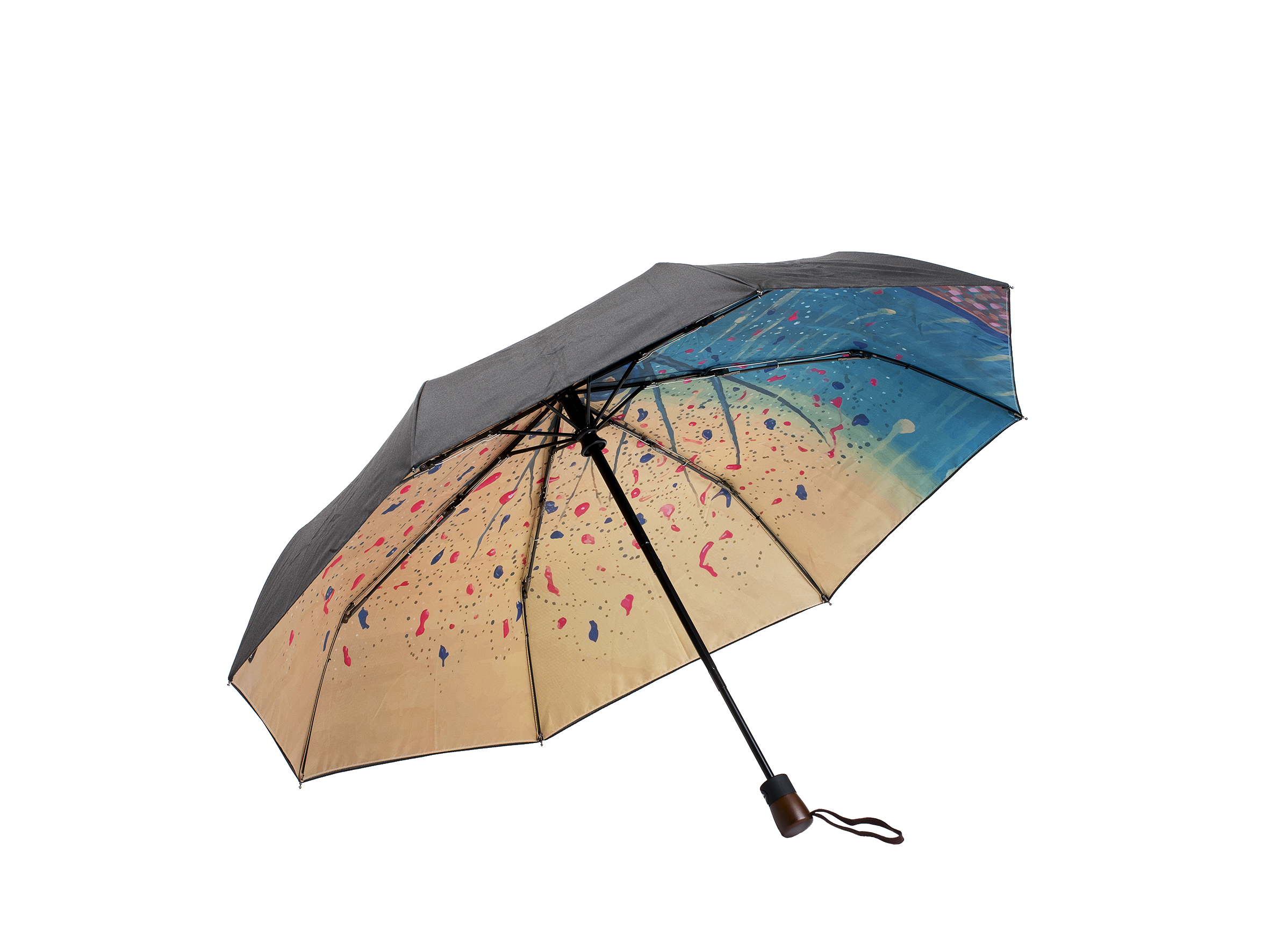 8 Ribs: H: 5 cm, L: 29 cm, W: 440 grams; Canopy Dimension: 95 cm. Box size: H: 7cm, L:29 cm, W: 8 cm, Umbrella + gift box: 590 grams. Black outer and multicoloured inner pongee fabric. Our double pongee fabrics ensure higher resistance to tearing, abrasion and that Your umbrella dries quickly.