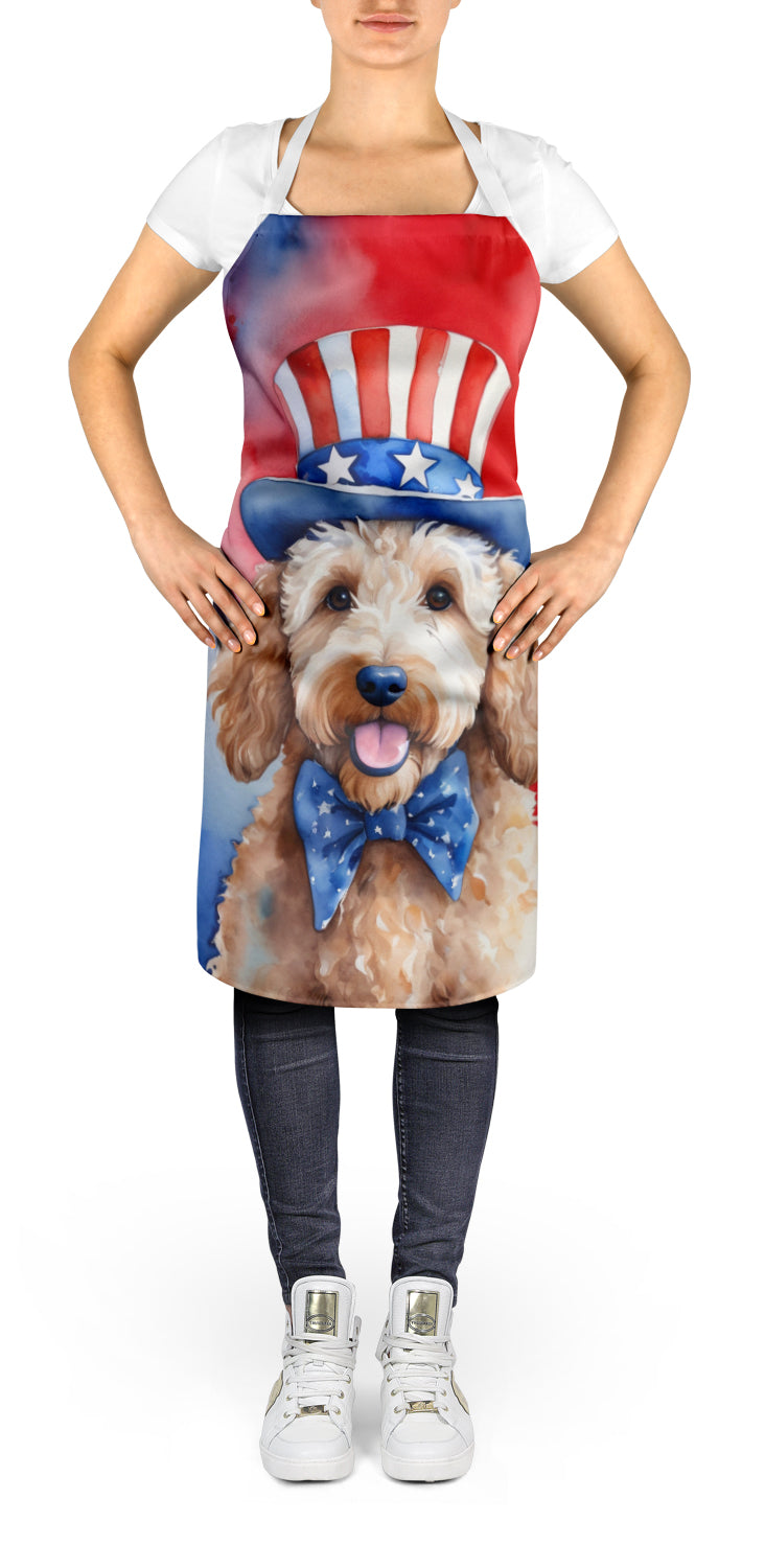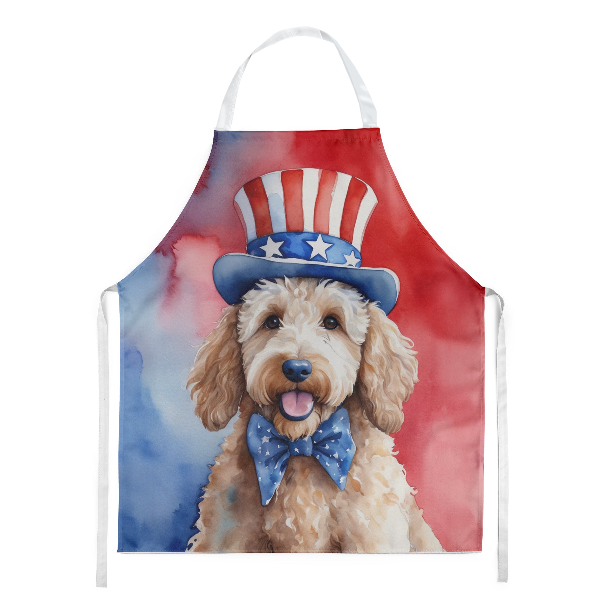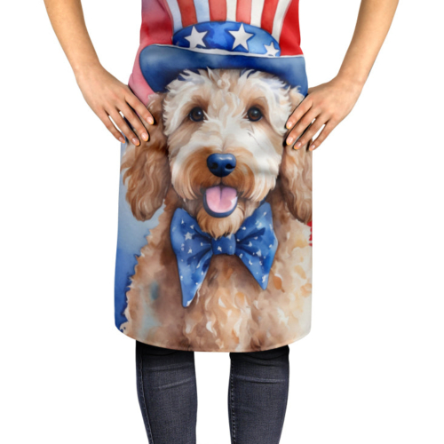 Apron featuring breed specific Goldendoodle artwork. Elevate your cooking, baking, and grilling experiences with our versatile Kitchen or BBQ Apron. This Bib Style apron isn’t just limited to culinary activities – it also serves as an excellent baking apron, artist apron, server apron, gardening apron, or even a dog grooming apron. The apron showcases vibrant full-color artwork contributed by one of our talented artists, bringing a dash of style to your daily tasks. With dimensions of approximately 27″W x 30″H, it provides ample coverage to protect your clothing from spills and splashes. Our apron is meticulously crafted from 100% Ultra Spun Polyester, known for its durability and lightweight nature. The apron comes with white tie straps, ensuring a comfortable and adjustable fit for all. It’s a perfect choice for kitchen apron enthusiasts, whether you are a woman or a man. Designed for easy maintenance, this apron is fully machine washable. The quick-drying polyester material actively reduces staining, keeping your apron looking fresh and new for longer. Our beautifully designed apron isn’t just a functional kitchen accessory – it’s a fashion statement in the culinary world!