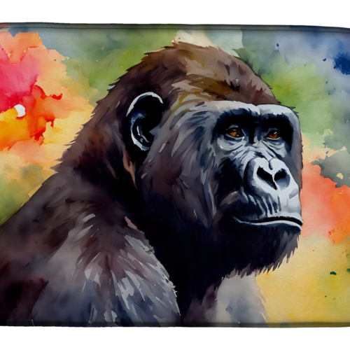 Dish Drying Mat featuring breed specific Gorilla artwork. Say goodbye to messy countertops and soggy dish towels with our innovative dish drying mat. Our high-quality dish drying pad is designed to keep your countertops dry while offering a stylish and efficient solution. Whether you’re air drying dishes, glasses, stemware, silverware, pots, pans, bottles, or even fruits and vegetables, our dish mat is the perfect choice. The 14 inches x 22 inches size fits most counters and dish drying racks, and the non-slip design ensures stability. Made with water-absorbent polyester and a polyurethane foam insert, our dish drying mat is not only functional but also durable. It’s machine washable and printed in the USA for long-lasting use. The beautiful artwork adds flair to your kitchen decor, making it a perfect housewarming gift or present for any occasion. Upgrade your kitchen experience with our absorbent and versatile dish drying mat.