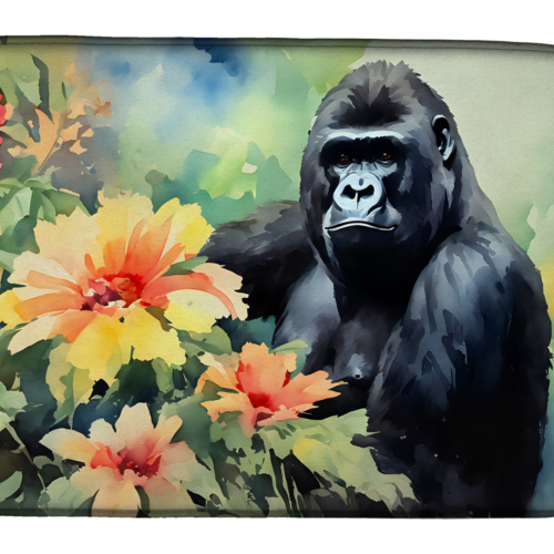 Dish Drying Mat featuring breed specific Gorilla artwork. Say goodbye to messy countertops and soggy dish towels with our innovative dish drying mat. Our high-quality dish drying pad is designed to keep your countertops dry while offering a stylish and efficient solution. Whether you’re air drying dishes, glasses, stemware, silverware, pots, pans, bottles, or even fruits and vegetables, our dish mat is the perfect choice. The 14 inches x 22 inches size fits most counters and dish drying racks, and the non-slip design ensures stability. Made with water-absorbent polyester and a polyurethane foam insert, our dish drying mat is not only functional but also durable. It’s machine washable and printed in the USA for long-lasting use. The beautiful artwork adds flair to your kitchen decor, making it a perfect housewarming gift or present for any occasion. Upgrade your kitchen experience with our absorbent and versatile dish drying mat.