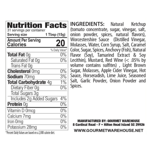Gourmet Warehouse steak sauce is rich with bold flavors crafted with premium ingredients. A splash of red wine and a bevy of spices intensifies the deep flavor, perfect for any type of red meat such as grilled steak and roasts. Made with natural ingredients and no high fructose corn syrup. Taste the quality in Gourmet Warehouse handcrafted products.